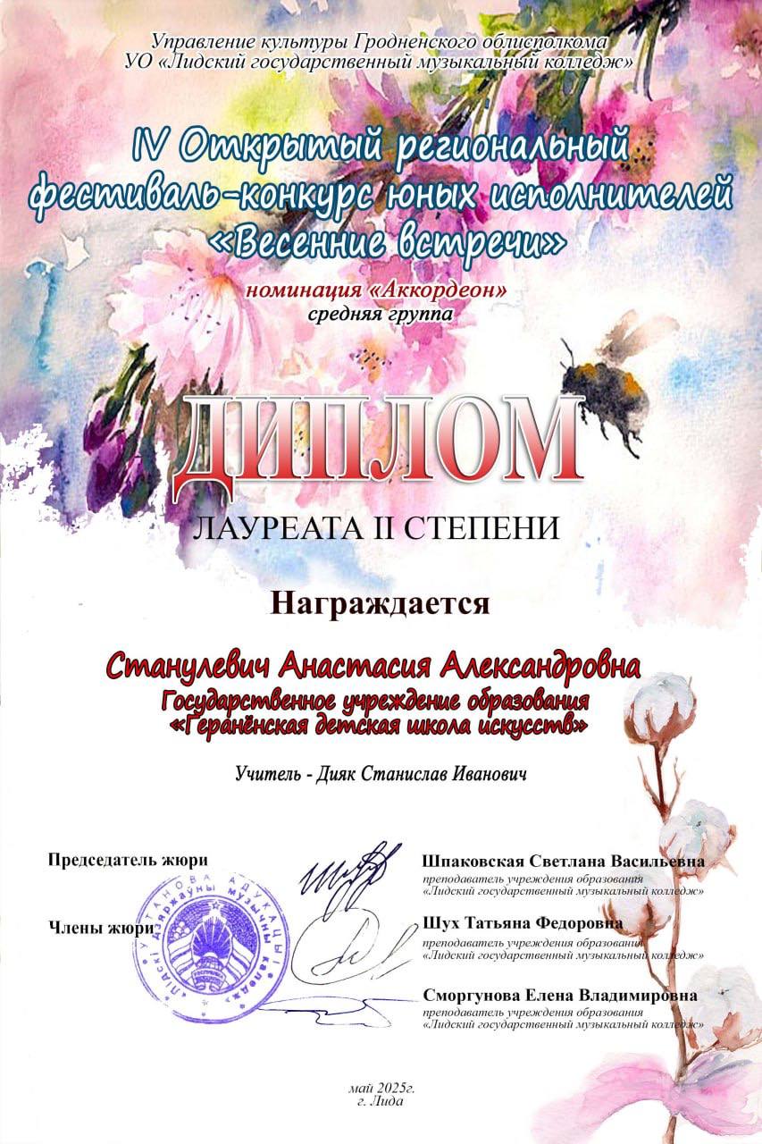 ✨ Станулевич Анастасия - Лауреат II степени (учитель Дияк С.И.)
