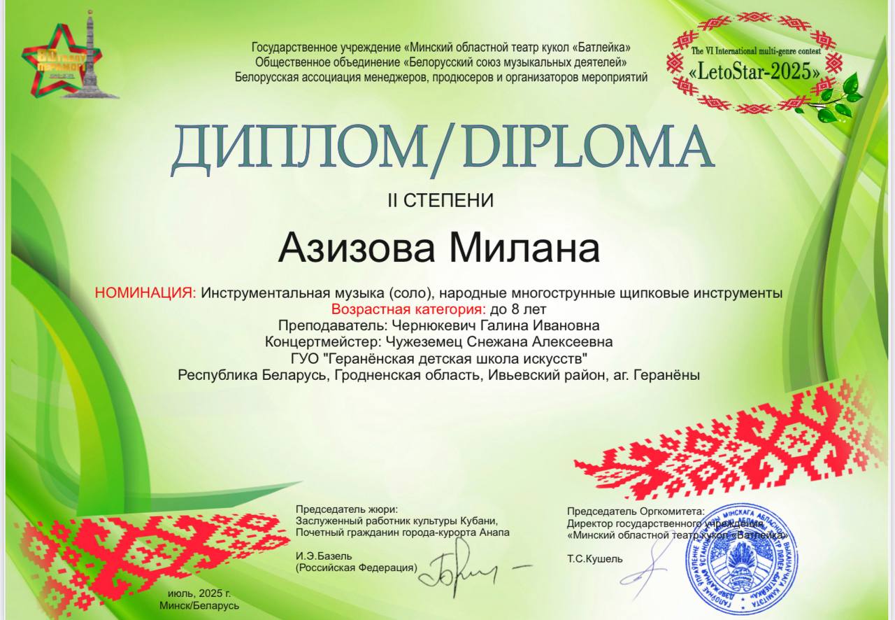 🎶 Азизова Милана (инструментальная музыка, соло) - ДИПЛОМАНТ II СТЕПЕНИ! 🥈